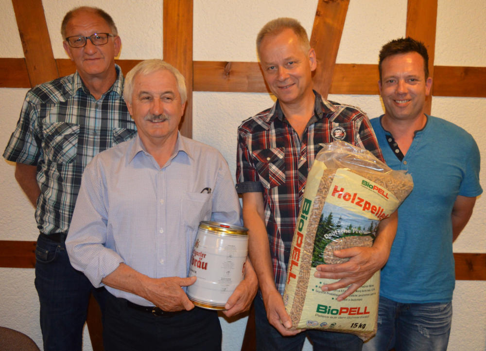 OV Reiner Kimmich (links im Bild) und OR Jörg Friedrich (rechts im Bild) verabschieden Roland Weik (Mitte links) undWolfgang Szabady (Mitte rechts).Tomislav Gergel fehlt auf dem Bild.