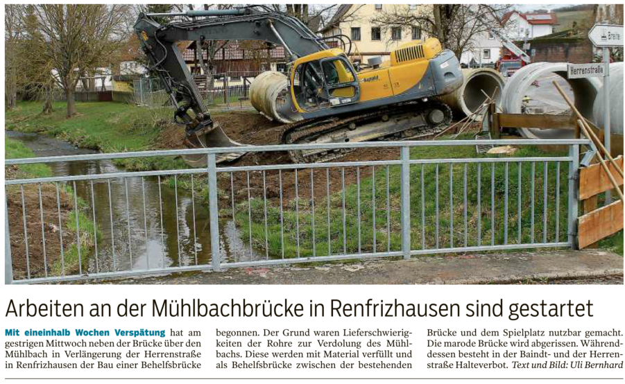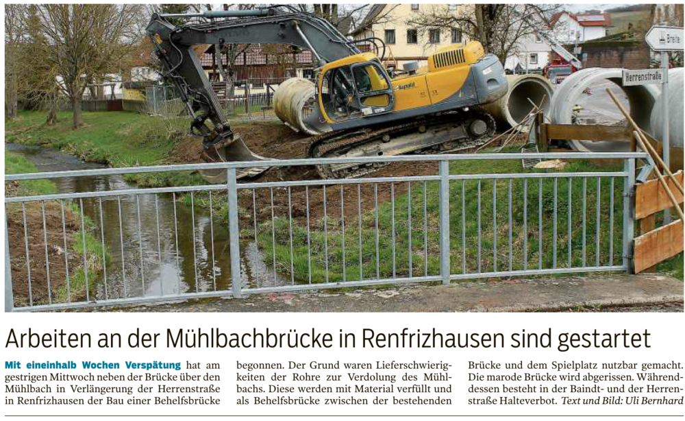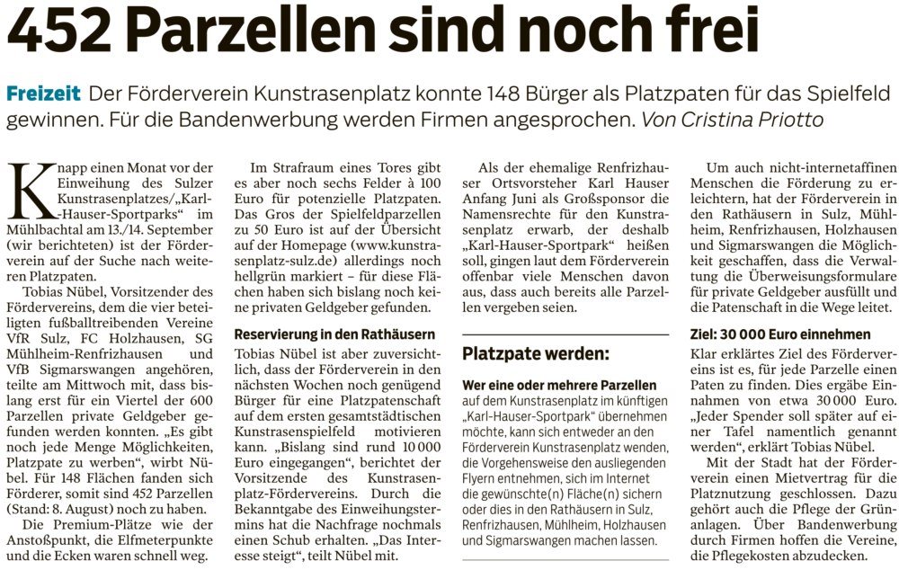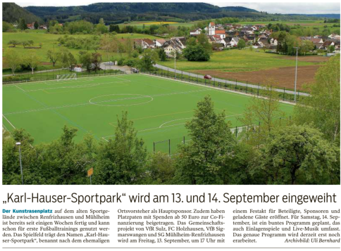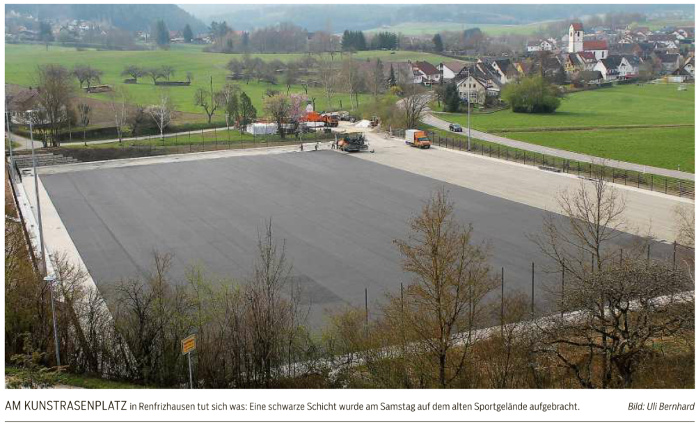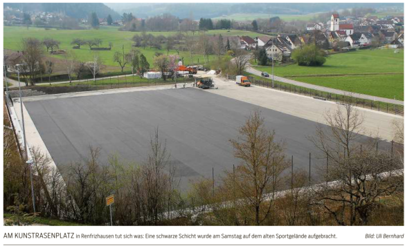 Kunstrasenplatz RenfrizhausenSpatenstich am 11. September 2018Nachdem der symbolische Spatensticherfolgreich gelungen ist, sind die Bau-arbeiten für den Kunstrasenplatz im Mühlbachtal bereits in vollem Gange.