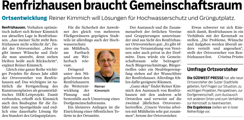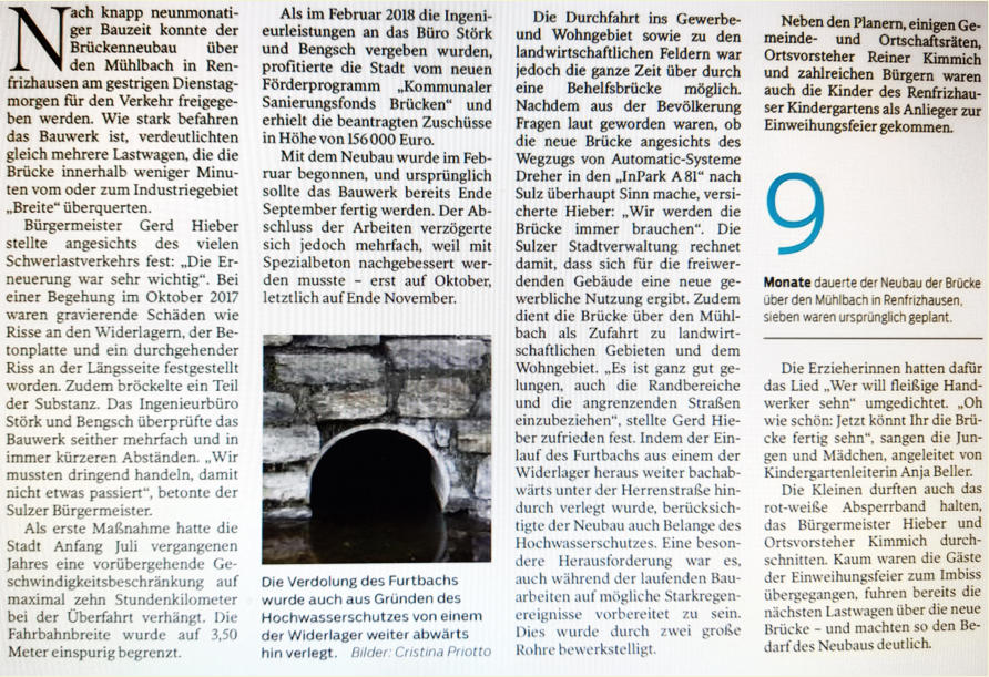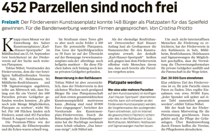 Freie Fahrt Artikel aus der Südwestpresse vom 27.11.19 von Christina Priotto